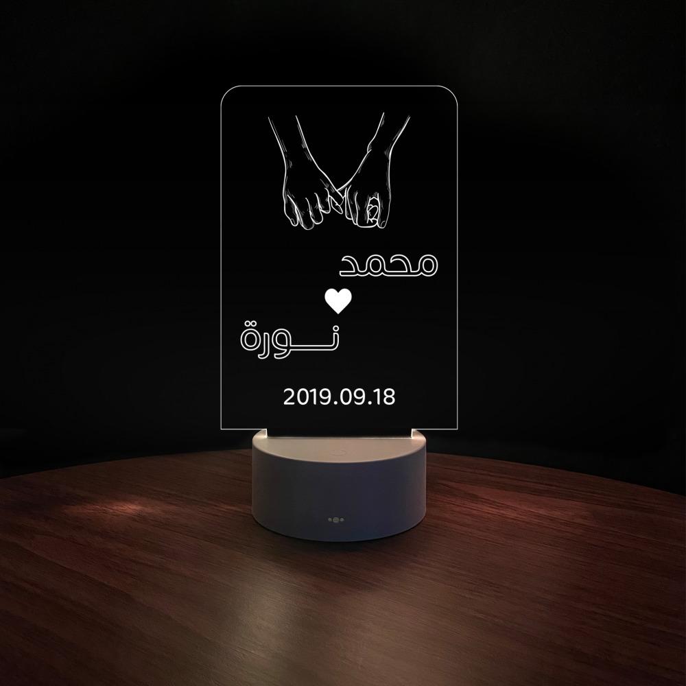 اختر اسمك و اسم من تحب مع تاريخ معين باضاءة سحريه خافتةالقاعدة متوفرة ب 16 لون يمكن تغييرهم بكل سهولهقاعدة مع ريموت يمكن من خلاله تغيير الالوانامكانية التحكم بشدة الاضاءه وبطريقة عرضهاقاعدة متوفرة بلون ابيض "حالياً"