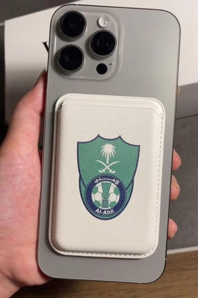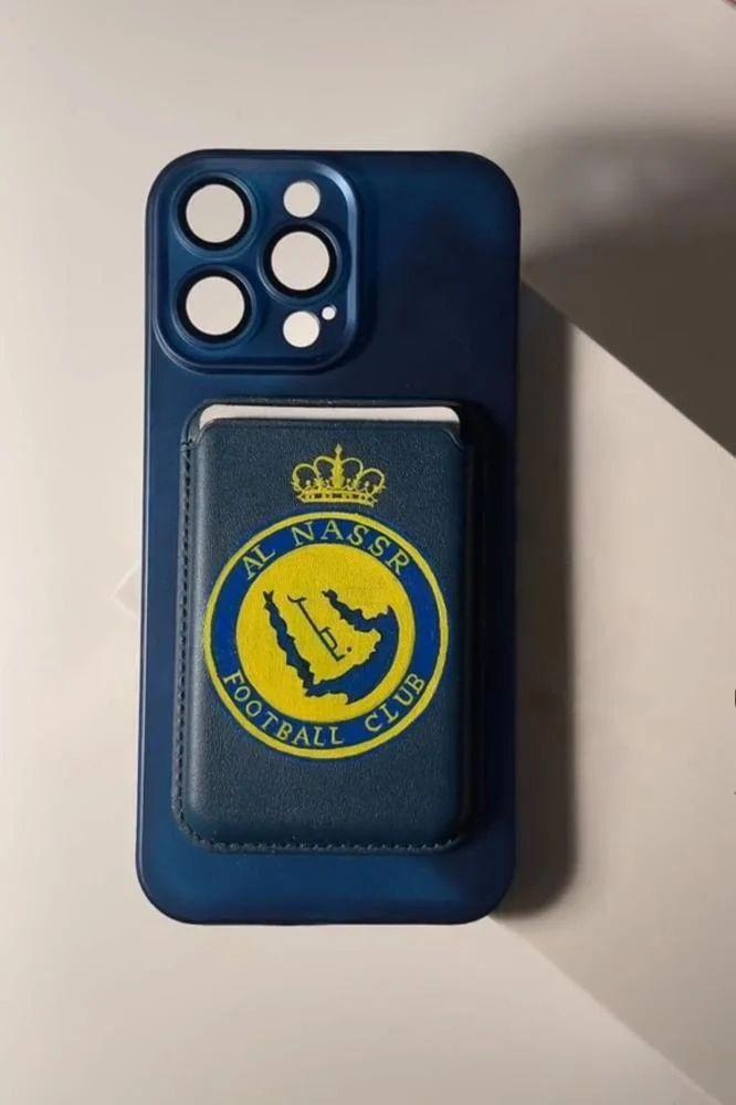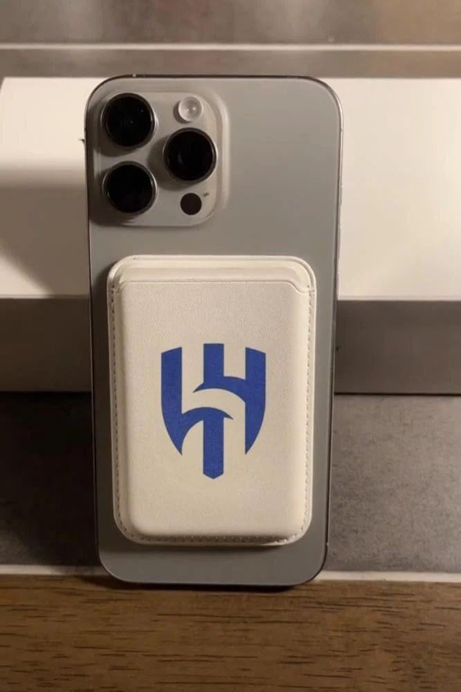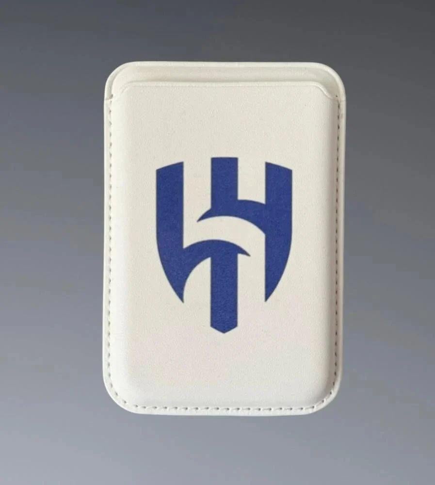 محفظة جلدية أنيقة تُثبت مغناطيسيًا على الجوال، مصممة لتوفير سهولة الوصول للبطاقات أثناء التنقل.